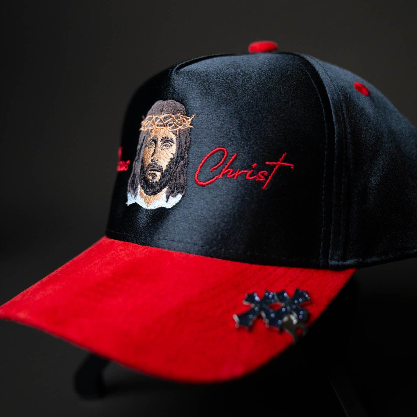 Elevate your faith-based wardrobe with this striking Jesus Christ Hat, featuring premium black satin construction paired with a distinctive red bottom underbrim. The design incorporates John 14:6—"I am the way, the truth, and the life"—a powerful scriptural reference that speaks to your spiritual convictions. The contrasting red underbrim adds visual depth while the quality satin material ensures durability and a refined appearance. Perfect for believers seeking meaningful accessories that reflect their devotion, this hat combines thoughtful design with wearable theology